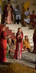 E’ stata una serata magica organizzata per regalare momenti di spensieratezza e meraviglia con molta semplicità. L’ associazione ringrazia Enzo Valente nella parte di Andrea Carafa , Antonio Talotta, ( falconiere) klaus maestro d’armi, Vittoria Scilanga( fachira), Andrea Cidone ( Galeoto) , Tiziana Filippelli ( principessa D’Aquino), le ragazze dell’ oratorio San Domenico Savio, i tre tamburatori della banda Euterpe corpo bandistico di Ciro’ , Chiara Cidone ( danzatrice del ventre). Infine la presidente dell’associazione ringrazia tutti i figuranti e tutti coloro che hanno permesso la buona riuscita della serata.
