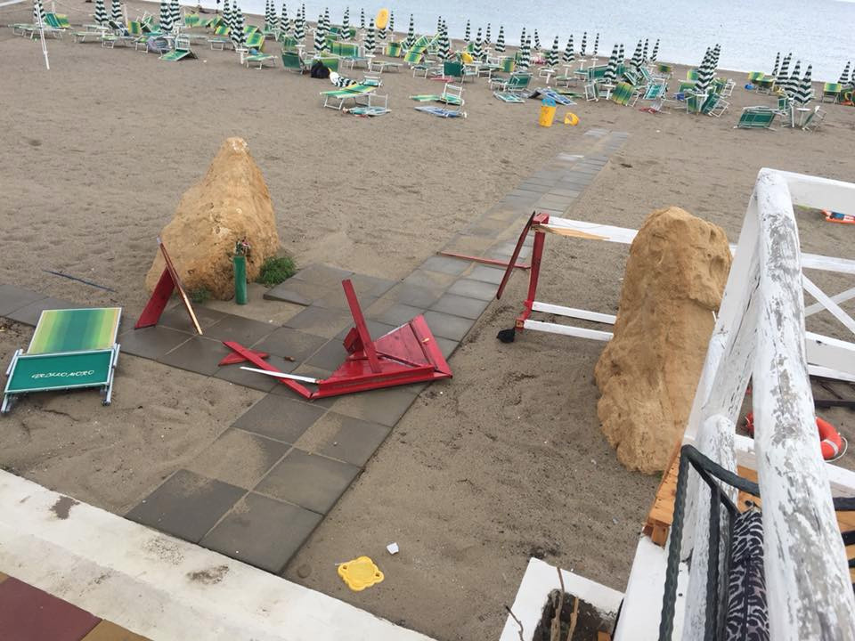 Tromba d’aria sul lungomare Cirò Marina, danni ai Lidi Balneari. Video e Foto