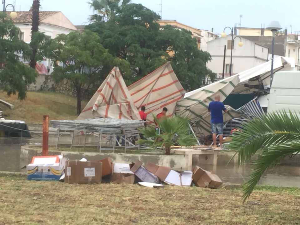 Una tromba d’aria si è abbattuta nella mattinata di oggi nell’Area portuale e sul Lungomare di Cirò Marina, provocando numerosi danni ad alcuni lidi e sia a gazebo dei mercatini, in particolare, ha investito il lungomare zona Torrenova, sradicando torrette, ombrelloni e attrezzature dei giochi per bambini.