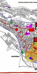 Ma le idee sono giunti pure dagli ospiti e turisti intervenuti in questa lunga passeggiata iniziata da piazza della Repubblica passando per San Nicodemo, San Giuseppe, San Menna, fino ad arrivare al bastione Cannone. Lungo il tragitto , le vie sono state animate dalla voce del cantautore Nicodemo Stricagnolo con i suoi canti popolari. Oltre al sindaco era presente l’assessore al turismo Cataldo Scarola e l’assessore alla cultura Francesco Mussuto. Tra gli immobili da recuperare la casa di don Vitetti, ha detto il sindaco Francesco Paletta, e la casa di Ilio Adorisio con la quale siamo già in trattative, questa dovrebbe diventare la casa della cultura. Cirò merita tanto, prosegue il sindaco durante le escursione tra gli antichi vie del centro storico, abbiamo aree degradate per via dello spopolamento, si può intervenire anche con poco se c’è una fitta collaborazione di idee o un semplice suggerimento. Il percorso intrapreso verso le nove chiese, in futuro potrebbero essere interessate da un itinerario religioso. Particolare importanza si è data all’antica Ypskron odierno “Portello”, dove sorge la casa di San Nicodemo nato nel 900, oggi chiesa omonima che custodisce un osso mandibolare del santo all’interno di una teca in argento.