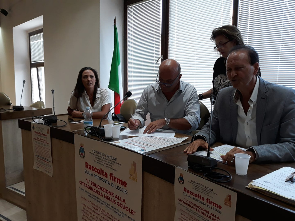 Crotone, Insegnamento della “educazione alla cittadinanza nelle scuole”: Parte una “gara di civiltà”, raccolta firme per la proposta di legge