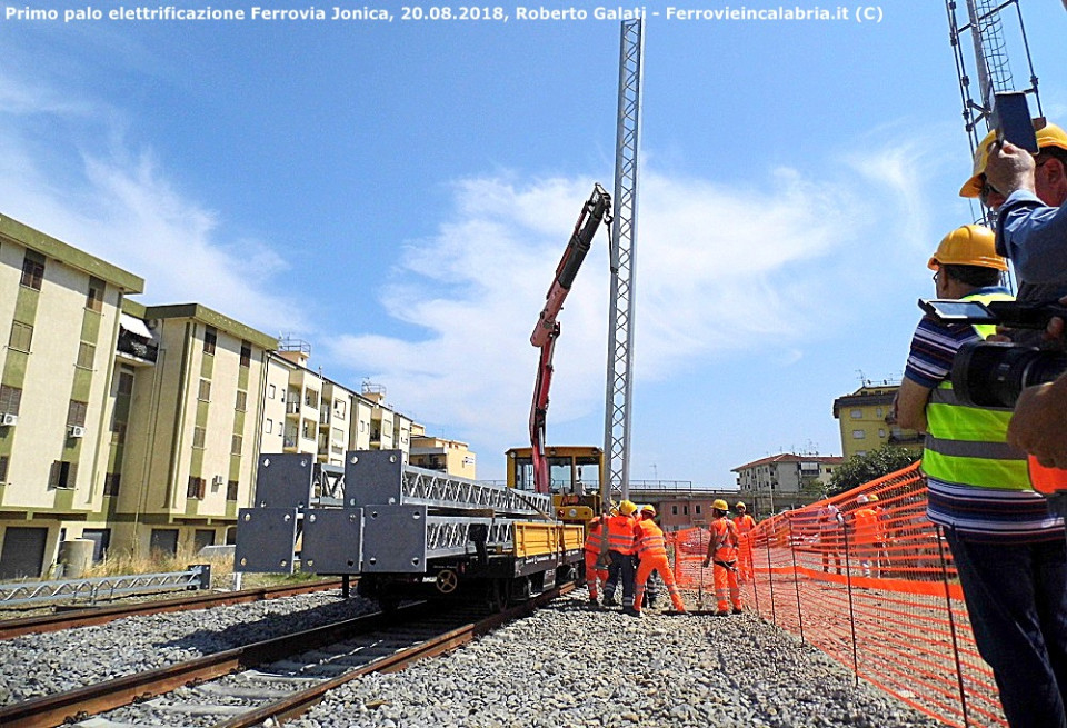 I lavori di elettrificazione della tratta Sibari – Catanzaro Lido proseguiranno per circa un anno, in orario notturno per non interferire con la circolazione dei treni: peraltro l’installazione della palificazione, oggi molto rapida in quanto i pali vengono imbullonati ad un plinto di cemento all’interno della cui gittata vengono affogati i 4 punti di ancoraggio del palo, ha richiesto una lunga sequenza di passaggi burocratici presso gli organi di tutela paesaggistica ed archeologica. In questi mesi di lavori di installazione della palificazione, RFI completerà la progettazione ed avvierà la costruzione delle Sottostazioni Elettriche (SSE), ovviamente necessarie a garantire la continuità di alimentazione elettrica della catenaria. Anche in questo caso, infatti, è necessario individuare aree possibilmente lontane da luoghi densamente abitati, ma allo stesso tempo non eccessivamente distanti dai principali elettrodotti Enel, dove connettere le SSE. Ben chiari i benefici che deriveranno dall’elettrificazione della Ferrovia Jonica: noi, in ordine di importanza, considerando l’atavico isolamento che attanaglia il versante jonico calabrese, poniamo il ritorno dei collegamenti InterCity ed InterCity Notte con il resto d’Italia, e soprattutto l’istituzione di collegamenti Frecciargento da/per Roma Termini. Ma perchè no, previo accordo con le società ferroviarie nazionali estere, anche l’istituzione di collegamenti periodici da Francia, Austria e Germania per incentivare il turismo in un territorio la cui vocazione primaria è proprio quella turistica, culturale ed agricola.