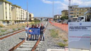 Ma la posa del primo palo, è stata ieri parte integrante di un importante evento organizzato da Regione Calabria e Rete Ferroviaria Italiana sempre all’interno della stazione di Corigliano. In un breve convegno iniziale, moderato dall’Assessore Regionale alle Infrastrutture Roberto Musmanno, sono intervenuti il Commissario Straordinario della neonata città di Corigliano – Rossano, il Dott. Domenico Bagnato, l’Amministratore Delegato di Rete Ferroviaria Italiana Maurizio Gentile, ed il Presidente della Regione Calabria Mario Oliverio. Un evento che abbiamo apprezzato molto, durante il quale sono state messe da parte tutte le divergenze politiche e settoriali: ieri si era tutti uniti in un unico coro di entusiasmo per il miglioramento della mobilità sulla fascia jonica calabrese. Oltre ai rappresentanti della Giunta Regionale, erano presenti infatti anche le neo-senatrici del Movimento 5 Stelle Silvia Gelsomina Vono di Soverato, e Silvana Rosa Abate di Corigliano, entrambe attivissime proprio per il rilancio delle infrastrutture stradali e ferroviarie joniche. Un plauso ed il totale sostegno agli interventi di elettrificazione sulla linea Jonica sono giunti anche dal Ministro dei Trasporti Danilo Toninelli. Ma abbiamo avuto anche il piacere di incontrare e discutere delle comuni battaglie anche con gli amici Fabio Pugliese, Presidente dell’Associazione Basta Vittime sulla SS.106, ed Euristeo Ceraolo, storico attivista di Rossano, onnipresente in tutte le iniziative di proteste e proposta legate alle sorti della Ferrovia Jonica ed i suoi servizi regionali ed a lunga percorrenza (emblematica la sua battaglia, da noi condivisa in toto, sul ripristino dell’InterCity Notte Crotone – Milano Centrale e vv).