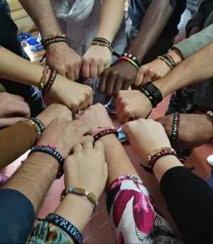 Tra i momenti più belli della giornata, il dono dei braccialetti in filo con su scritto il nome di ciascun partecipante all’iniziativa con il colori della bandiera del Paese di provenienza, realizzati da Cherno, uno dei giovani beneficiari del progetto SPRAR di Petilia.