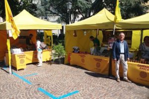 La festa dell’uva di Catanzaro all’inizio dell’autunno ancora una volta ha ribadito l’importanza di questi momenti che arricchiscono e rendono vivaci i centri storici di città grandi e piccole. In diversi si accontentano di guardare e curiosare tra gli stand ma c’è chi ne approfitta per gustare e acquistare cibi e specialità locali. I gazebo di Campagna Amica hanno contribuito ad arricchire  la festa con  una presenza di realtà economiche espressione del territorio che con la vendita diretta dei prodotti agricoli e agroalimentari, sempre di più acquistati direttamente dalle mani dei contadini, garantiscono identità e qualità al giusto prezzo. “Ho voluto essere presente – ha dichiarato Molinaro Presidente di Coldiretti – sia  per testimoniare apprezzamento e ringraziare per la determinazione l’azienda vitivinicola Dell’Aera che con la sua presenza rappresenta la voglia di fare impresa dei giovani agricoltori calabresi ma in particolare perché il moltiplicarsi di queste occasioni, testimonia che i cittadini apprezzano le specialità agricole e agroalimentari a km zero e perciò bisogna insistere per difendere il nostro cibo che copiato arreca un danno alla sola Calabria  di circa unmiliardo e mezzo di €uro l’anno. Questo il valore di prodotti contraffatti che ogni anno finiscono sulle tavole dei consumatori , sottraendo risorse e posti di lavoro al mercato interno. Un danno ingente  alla nostra agricoltura e alla nostra economia e per questo  – conclude Molinaro – Coldiretti dopo la raccolta firme in Italia su “Stop al Cibo Falso”, sostiene in Europa con la Fondazione Campagna Amica, la sottoscrizione a favore dell’etichettatura obbligatoria sui cibi con l’iniziativa “Smaschera il Tuo Cibo e Mangia Originale” per conoscerne l’origine, perche difendere il cibo italiano dagli attacchi internazionali, significa voler bene all’Italia e far crescere il sud.