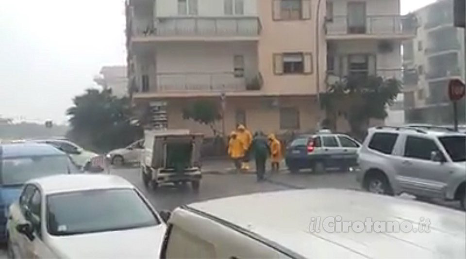 Via della Libertà a Cirò Marina, nuovamente chiusa al traffico, dove il Commissario Prefettizio, Dott. Girolamo Bonfissuto, ha ordinato immediatamente l’attivazione delle pompe per l’aspirazione dell’acqua piovana dai tombini e ordinato la chiusure delle scuole di ogni ordine e grado.