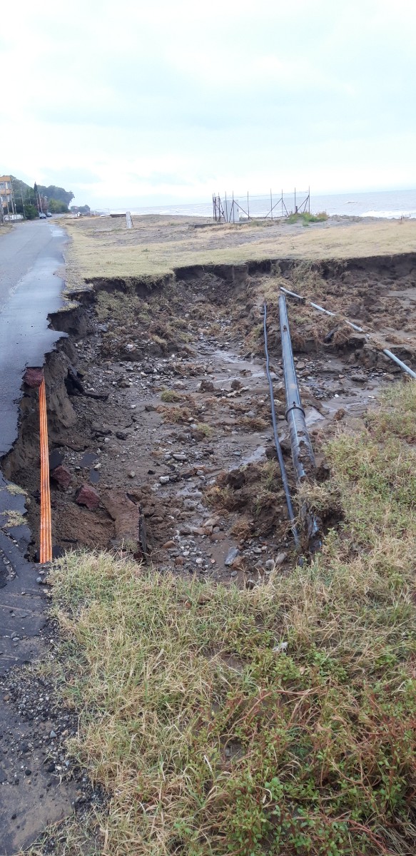 Messa a dura prova anche la zona “mortelletto”, il cui litorale è stato già particolarmente flagellato dalle recenti mareggiate settembrine: a nord del Barcanolo, infatti, la valanga di acqua che ha scavalcato e distrutto le recinzioni dei terreni adiacenti si è riversata a mare trascinando con se, oltre che detriti di ogni genere, anche tratti della strada che porta alle abitazioni dei rione “mortelletto” e creando vere e proprie voragini che hanno lasciato scoperto il sottostante collettore fognario che porta al depuratore di Torretta e le condutture elettriche che alimentano illuminazione pubblica e abitazioni.