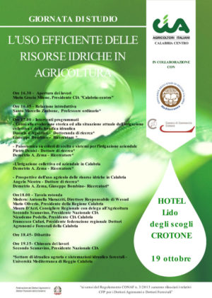 Per la sua importanza questo argomento è stato scelto per una giornata di studio organizzata da Cia-Agricoltori italiani in collaborazione con l’università Mediterranea di Reggio Calabria e la camera di commercio di Crotone il prossimo 19 ottobre.