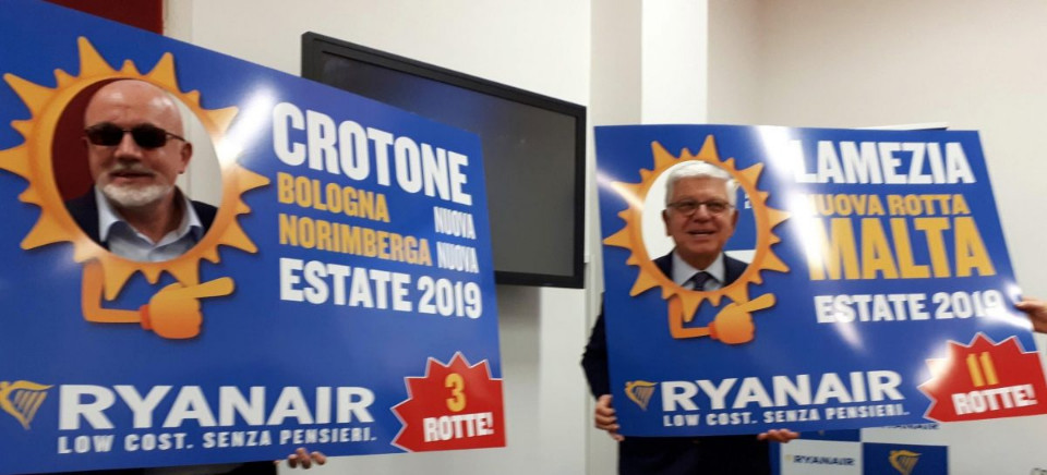 La programmazione per la prossima stagione calda offrirà, nel dettaglio, a Crotone tre rotte: Milano Bergamo (giornaliero), Bologna (tre voli a settimana) e Norimberga (due voli a settimana); a Lamezia 11 rotte: Baden-Baden (due voli a settimana), Bologna (11 voli a settimana), Bruxelles Charleroi (due voli a settimana), Francoforte Hahn (due voli a settimana), Cracovia (due voli a settimana), Londra Stansted (quattro voli a settimana), Malta (due voli a settimana), Milano Bergamo (tre voli giornalieri), Milano Malpensa (due voli al giorno), Pisa (giornaliero) e Treviso (giornaliero).