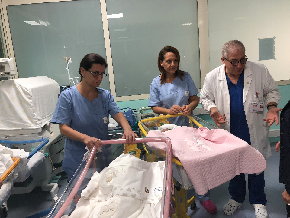 “Il dottore col cuore”, come si evince dalla spilla rossa a forma di cuore, che spicca sul biancore immacolato del suo camice, ci ha raccontato di un reparto all’avanguardia, che permette di individuare alcune patologie malformative del neonato, e di formulare diagnosi prenatali attraverso l’ecocardio fetale, in modo da indirizzare le mamme di quei neonati che nascono con problemi al cuore e necessitano di intervento chirurgico, anche in epoca neonatale, in centri di cardiochirurgia neonatale attrezzati, per evitare alle neomamme disagi di trasporti e spostamenti, mentre le infermiere presenti: Teresa Turra’, Stefania Vrenna, Francesca Romano’ e Mariangela Marrazzo sistemavano amorevolmente i piccoli nati nelle carrozzine con le copertine nuove di zecca!