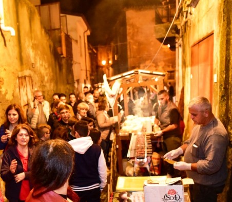 Circa un migliaio di turisti enogastronomici, provenienti da tutta la Calabria, hanno invaso l’antico borgo per festeggiare il vino novello nella serata dedicata a San Martino alla quarta edizione della “festa regionale del vino calabrese e dell’enoturismo”. I visitatori sono stati accolti in Piazza della Repubblica dallo stand comunale dove era possibile recuperare le mappe Nostos del centro storico con l’indicazione dei punti panoramici, dei luoghi di interesse, dei monumenti principali e delle chiese che resteranno aperte in occasione dell’evento e infine delle diverse aree allestite appositamente nelle zona più caratteristiche del borgo come il “Portello”, dove i turisti hanno potuto visitare anche la casa nativa di San Nicodemo nato nell’allora villaggio Pscron odierna . Proprio in questa area gli enoturisti hanno potuto ammirare la magica terrazza della Roccia del Diavolo romanticamente ribattezzata per l’occasione “Kissing Zone”.