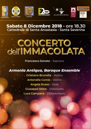 A dare voce agli splendidi brani sacri in programma sarà il Soprano Francesca Donato, accompagnato dai musicisti di Armonia Antiqua: Cristiano Brunella e Antonella Curcio (Violino), Angela Russo (Viola), Giuseppe Miele (violoncello) Luca Campana (cembalo).