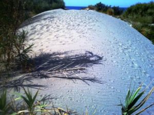 Sempre nella stessa area era stata rinvenuta dallo stesso botanico, qualche anno fa, nascosta dalla vegetazione, di neoformazione, una nuova Duna, formatasi negli ultimi anni grazie ai forti venti di tramontana e maestrale presenti durante l’inverno, che aveva battezzata: la duna dell’elefante per la sua grande mole, una collina di sabbia bianca da cui si può scorgere il mare blu della preziosa costa cirotana impregnata di rari papaveri gialli e naturalmente di Ginestra bianca. Un territorio questo a vocazione fortemente turistica e paesaggistica di grande valore ambientale.