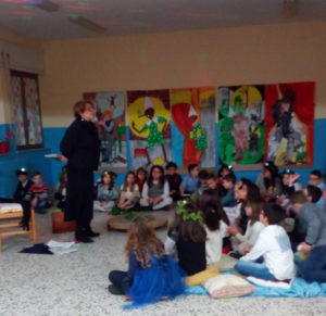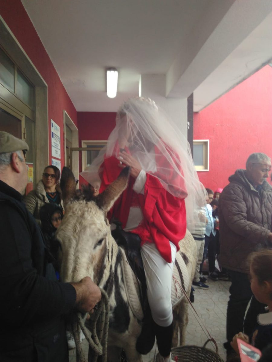 Bravissimi gli alunni anche nell’intonazione di canti di sapore antico e natalizi eseguiti all’unisono con le voci del duo Julia e Francesco Russo la cui chitarra ha aggiunto un tocco di dolcezza in più alle voci bianche dei bimbi. Grande è stata la meraviglia quando è stata vista sopraggiungere la Santa in groppa all’asino, accompagnata dal fedele Castaldo , preceduta dal tintinnio del campanello e recante caramelle e piccoli doni. Questo momento in particolare é stato condiviso dalle classi di tutto il plesso. È seguito poi l’intervento di Padre Cosimo Chianura che ha approfondito l’aspetto religioso della ricorrenza di Santa Lucia. Caramelle, frittelle calde e grano nel vino cotto per tutti. Come sempre, un vivo ringraziamento è stato rivolto alle mamme, che si sono date da fare nella cucina della scuola , sempre presenti e sensibili a qualunque attività proposta. Le maestre delle classi terza A, Francesca Calabretta e Marisa Savelli, e della terza B, Crogliano Antonietta e Marinelli Rosanna, hanno ringraziato la “Santa”, devotamente interpretata dalla signora Zangari Caterina ,accompagnata dal sig. Murano e dal sig. Morise, e i loro piccoli e compiti alunni.
