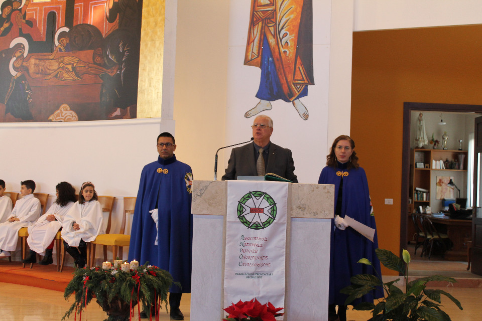 L’ANIOC “Associazione Nazionale Insigniti Onorificenze Cavalleresche” di Crotone, il 16 dicembre 2018, ha organizzato una festa per gli auguri del “Santo Natale”, durante la quale sono stai consegnati i diplomi ai nuovi Soci, seguito da un momento conviviale, in un locale di Crotone. L’evento si è svolto in due fasi: La prima con la celebrazione della Santa Messa nella parrocchia del SS.mo Salvatore al Fondo Gesù di Crotone, officiata dal parroco Comm. Don Girolamo Ronzoni, con la partecipazione dei diaconi, dei chierichetti, il coro della parrocchia e la presenza dei ragazzi del catechismo e gli amici di Don Ottorino. Il parroco, i diaconi e i chierichetti, onorati dal Comm. Antonio Mazza, dal Cav. Uff. Carlo Luigi Crea, dalla Dama Michelina De Franco, dal Cav. Uff. Nicola Facente e dal Delegato comunale di Soverato Dama Nadia Montirosso, vestiti con il mantello dell’associazione, sono stati accompagnati, durante la processione dalla Sacrestia della Chiesa fino all’Altare. Alla fine della Santa Messa, il Cav. Uff. Nicola Facente ha ricordati tutti i defunti della delegazione Provinciale ANIOC di Crotone, la Dama Michelina De Franco, ha letta la preghiera a San Giorgio Protettore dei Cavaliere.