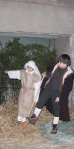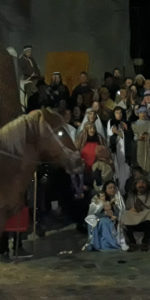La rappresentazione si è aperta alle ore 17:30 del 30 dicembre con le musiche degli zampognari e con l’apparizione dell’angelo a Maria (Ida De Fine). Maria e Giuseppe (Franco Fazio) hanno vagato per le vie del borgo con l’asinello per trovare un riparo per far nascere il bambinello. La scena della natività è stata allestita nell’atrio di uno dei palazzi antichi del borgo, quello della famiglia Diletto. Nei pressi del Castello Maiorano è stata allestita la scesa dell’incontro tra Erode Antiba (Nicola Abruzzese) e i Re Magi ( Giovanni Acri, Francesco De Fine e Francesco Varrina). Il lungo elenco di scene prosegue con la casa dei giochi, animato da Mariagrazia Madera, Gina Chiarello, Maria Madera e Maria Carmela Capristo, le fornaie Filomena Palazzo e Giuseppina Russo, le venditrici di legumi Concetta Puzzi e Samantha Russso, le fruttivendole Mariateresa Benvenuto, Graziella Ferrari, Rosanna Ruggeri e Francesca Amantea, il Casaro Domenico e Ornella Iemboli, il fabbro Pasquale Vulcano, il falegname Attilio Parise, le cestaie Angelica Russso, Rossella Varrina e Francesco Chiarello, venditrici di aromi Rossella Varrina, Davide Fusco e Carmen Diletto, le venditrici di stoffe Silvia Iemboli, Rosalba Imbrogno, Assuntina Varrina e Elisa Garatti, le lavandaie Giulia Creolese e Rosa Farao, le ricamatrici Antonella Scalabrino e Rosaria Pugliese, le frittellare Bina Iemboli, Pina Tangari e Ilenia Esposito, i soldati Angelo Iemboli, Giuseppe Foggia, Giovanni Madera e Francesco Fabiani, i pastori Giuseppe Scarcella, Alessandro e Giuseppe Cianfarra, Ferdinando Ripoli e Pasquale Fazio, l’Angelo Antonella Amantea e il Bambinello Matilde Abbruzzese. Nella cantina allestita magnificamente vi erano Benigno Benvenuto, Giuseppe e Domenico Gentile. Si ringrazia l’associazione ERA di Terravecchia, il governatore della Misericordia di Scala Coeli