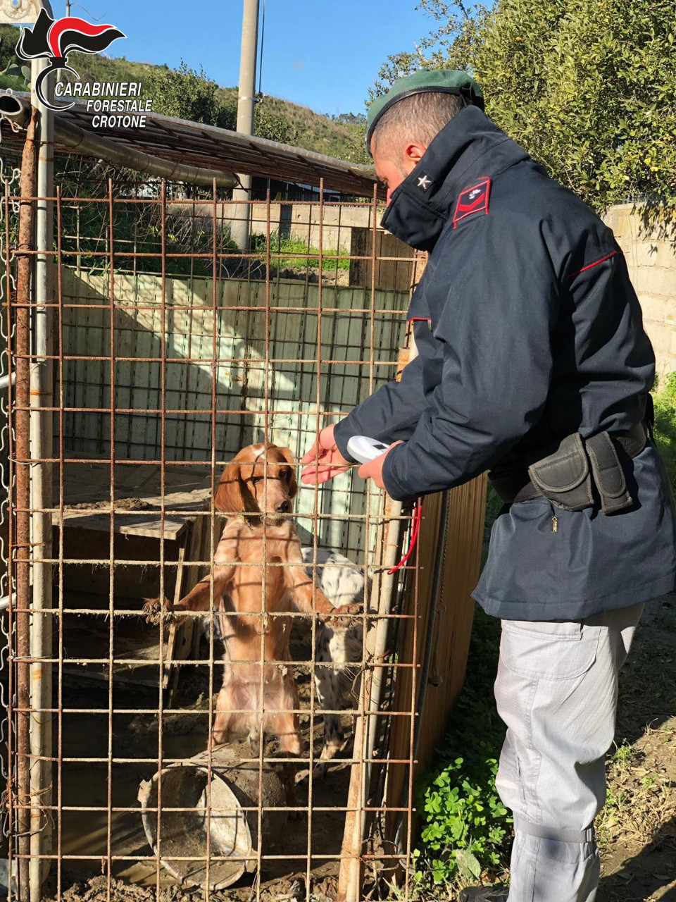 I Carabinieri Forestali hanno denunciato per maltrattamento di animali due uomini che detenevano due cani a Crotone, in un ricovero precario non protetto dalle intemperie. I cani al momento degli accertamenti erano privi di acqua e di cibo.