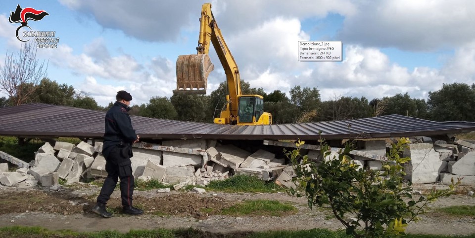 Il fabbricato in questione, di proprietà di una pensionata residente nella vicina Cariati e di superfice pari a circa 60mq, era stato individuato e sequestrato dagli uomini della stazione forestale di Cirò nel gennaio del 2015, appunto perché realizzato senza alcuna autorizzazione a costruire e tantomeno di nullaosta paesaggistico ambientale. Per di più il fabbricato ricadeva nel demanio statale, lungo l’argine destro del fiume Nicà e in area a rischio idraulico individuata dal PAI (Piano di assetto idrogeologico) fra le aree storicamente inondate.