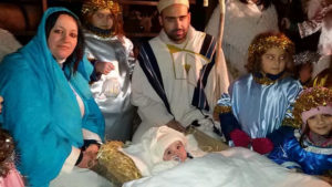 Maria e Giuseppe, incontrando la gente ed i mestieri, si sono visti rifiutare un rifugio caldo e confortevole (con dialoghi e riflessioni in dialetto strongolese); Gesù nasce in una povera magiatoia “al freddo ed al gelo” tra un vero bue ed un vero asinello. Non sono mancati i tre Re magi (Gino Zito, Mario Vetere e Gennaro Martino). Numerose piccole volte, portoni, scale e scalette, terrazzini cadenti, hanno riportato indietro con la memoria, e si sono prestate molto a ricreare l’atmosfera di un passato semplice, ricco di poesia e di valori, che si stanno perdendo.