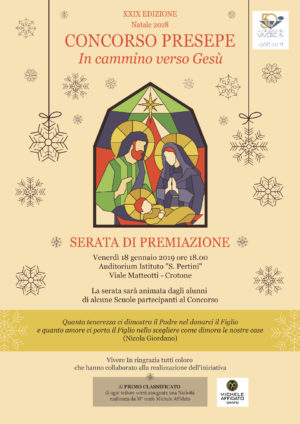 Venerdì 18 gennaio alle ore 18.00 presso Auditorium – Istituto Professionale di stato “S. Pertini” – Crotone, avrà luogo la serata di premiazione del Concorso Presepe, organizzato dal Movimento VIVERE IN, giunto alla ventinovesima edizione.