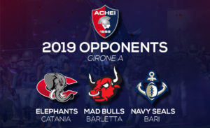 Registrata la presenza di ben 43 squadre che prenderanno parte al campionato (la più alta dalla sua formazione), le ipotesi rispetto alla composizione del Girone A non sono state disattese. Rispettando a pieno il criterio di territorialità per la formazione dei gironi, i Mida Achei Crotone si troveranno ad affrontare nella regular season 2019 i Vice Campione d’Italia, Elephants Catania, i retrocessi dalla seconda divisione, Mad Bulls Barletta ed i Navy Seals Bari. Il girone con il più alto peso specifico, dato confermato successivamente dal valore assegnato al Girone A per la definizione del Tie Break che è il numericamente più basso in assoluto tra tutte e dieci i gironi, ovvero 13,75.