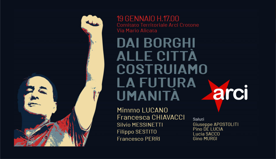 Dai borghi alle citta’: costruiamo la futura umanità, Sabato 19 gennaio h.17.00, Comitato territoriale arci crotone Via mario alicata 18.