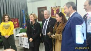 una targa ricordo alla Scuola dell’I.P.S.I.A. nelle mani della Dirigente scolastica prof.ssa Antonella Romeo e prof.ssa Amelia Pugliese.