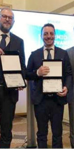 Antonino Bono di Cirò Marina, direttore Salute, Sicurezza e Ambiente Gardaland srl, premiato come Miglior Giovane Manager del Nord-Est, insieme al collega Stefano Nicolis, provenienti dal Gruppo Giovani di Verona.