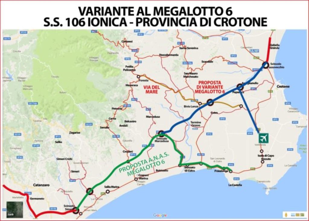 Lo studio di fattibilità proposto e approvato da Anas, si legge nel documento, “riprende il progetto proposto dall’Ing. Bevilacqua, sottoscritto e deliberato dai Consigli Comunali delle molte amministrazioni comunali interessate, le quali hanno ritenuto che lo stesso fosse un progetto valido per la realizzazione dell’opera a rilancio del territorio e a tutela dello stesso, vista  la scelta, da parte della Regione Calabria e degli Enti coinvolti, di  realizzare la Nuova SS 106 con un intervento a basso impatto ambientale, proponendo nello studio di fattibilità di ripercorre il più possibile un tratto ferroviario già esistente e attualmente dismesso proprio per non deturpare e alterare i luoghi esistenti.”