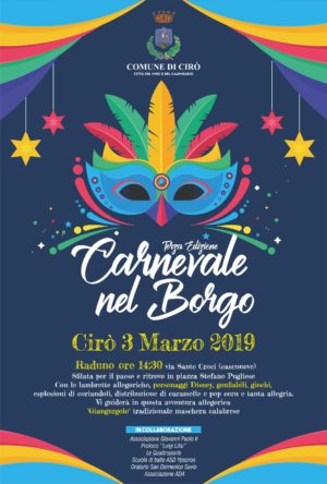 La spavalderia e l’irriverenza di Giangurgolo, la maschera calabrese presa in prestito dalla tradizione con le lambrette allegoriche ed i costumi più divertenti che sfilano ed animano le strade ed i vicoli del centro storico. Anche per la terza edizione continua ad essere l’identità ad ispirare il carnevale nel borgo. È l’invito del Sindaco Francesco Paletta che coglie anche l’occasione per ringraziare le associazioni per aver garantito anche in questa occasione il proprio fattivo e prezioso contributo creativo. L’evento è promosso, in collaborazione con l’associazione Giovanni Paolo II la proloco Luigi Lilio, l’associazione le Quattro Porte, la scuola di ballo ASD Ypscron, l’Oratorio San Domenico Savio e l’associazione ADA. Principesse e paggetti, super eroi, majorette e moschettieri, animaletti e mostriciattoli, ballerine di flamenco e pagliacci, scienziati pazzi e personaggi dei cartoni animati. Per tutti, il raduno è alle ore 14,30, armati di coriandoli e stelle filanti, in via Sante Croci, presso area Casenuove. Da qui, guidati dal Giangurgolo, la tradizionale maschera calabrese, muoverà la sfilata per le strade ed i vicoli del borgo, per ritrovarsi, infine, in piazza Stefano Pugliese dove ad accogliere il corteo ci saranno i personaggi Disney, gonfiabili, giochi ed esplosioni di coriandoli. Dunque Maschere, costumi e le mitiche tre ruote dei nostri nonni le Lambrette saranno loro le protagoniste mascherate del Carnevale della Città del vino e del calendario.