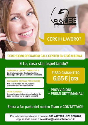 Per informazioni chiama il numero 389 4477928 – 371 3278468 oppure invia email a selezioni@salessolutionsrl.it