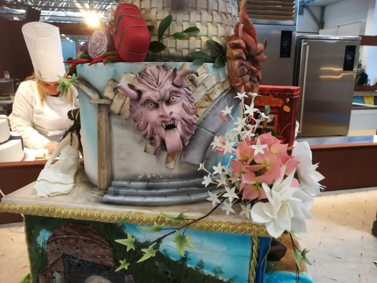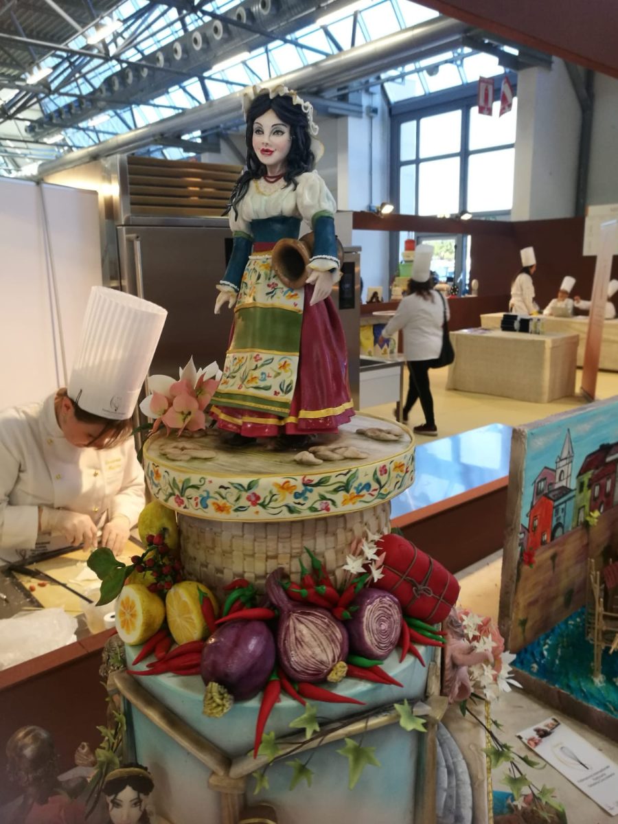 Per l’occasione sono giunte sul posto le professioniste cake designers della Federazione Internazionale di Pasticceria calabresi che hanno rappresentato attraverso una torta in zucchero la nostra terra. Per la realizzazione dell’opera hanno lavorato Rosanna Gigliotti, Cetta Cuppari, Maria Rosa Azzariti, Carmela Milano, Rosalba Suppa, Karla Leal Macedo, Nancy La Rosa, Cinzia Auditore.