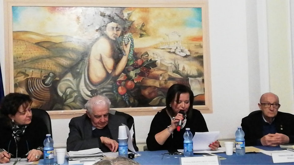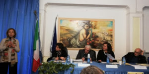 La professoressa Assunta Madera, referente del progetto che si conclude con questo convegno, ha letto invece la relazione della professoressa Giorgia Gargano, nella quale si ricorda l’impegno di Luigi Siciliani e le sue sollecitazioni presso Paolo Orsi,che hanno portato alla scoperta di numerosi reperti, oltre al già citato Tempio di Apollo Aleo. Nel 1939 sarà emanata la legge n. 89, che sancirà che tutti quello che viene ritrovato durante gli scavi in aree archeologiche diventa di proprietà della collettività, sono patrimonio pubblicò, così come poi sarà sancito dalla Costituzione . La Gargano ricorda il viaggio di Filottete e la fondazione da parte dell’eroe greco del tempio dedicato al dio Apollo. Filottete ed Eracle sintetizzano Krimisa, l’odierna Cirò, come terra di frontiera, di sbarco. Il santuario greco è immaginato come un luogo di sospensione dei conflitti fra Sibari e Crotone. La prima guerra mondiale depaupera il sud di uomini e di risorse, e questo blocca in un certo modo l’opera di Paolo Orsi, che in Siciliani trova il suo genius loci.