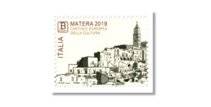 Completano il francobollo la leggenda ”MATERA 2019 CAPITALE EUROPEA DELLA CULTURA”, la scritta “ITALIA” e l’indicazione della tariffa B zona 1.