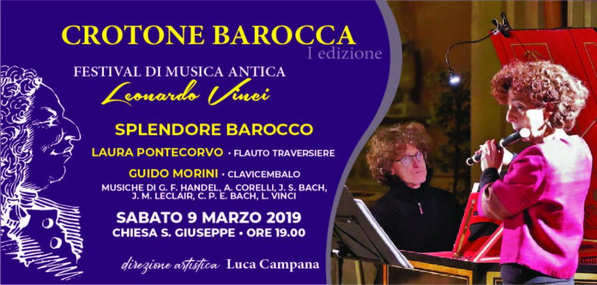 Splendore Barocco è il titolo del concerto che vedrà come protagonisti due grandi interpreti: Laura Pontecorvo e Guido Morini in un viaggio musicale attraverso il repertorio europeo per traversiere e clavicembalo della prima metà del XVIII secolo con una selezione di brani di autori tra i più significativi del periodo, tra questi: Locatelli, Bach e Handel. In programma anche una vera chicca: un personale e originale omaggio dei due artisti al compositore Leonardo Vinci a cui si ispira il festival, con l’esecuzione di alcune arie da La Partenope, ovvero Rosmira fedele, opera composta e rappresentata al Teatro San Crisostomo di Venezia nel 1725, trascritte da Guido Morini e poste in una sequenza tale da costituire tre movimenti di una ipotetica sonata.