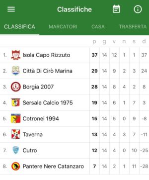 Il Cirò Marina corsara contro il Sersale, rifila una quaterna e consolida il secondo posto della classifica generale.Il campionato si chiude in bellezza per il Cirò Marina che si prepara ad affrontare i playoff.Un plauso a tutti i ragazzi che ancora una volta hanno dimostrato maturità calcistica,senso di responsabilità e spirito di collaborazione.Da segnalare la tripletta del bomber ,Christian Aloisio, che si aggiudica il titolo di capocannoniere del girone.Un ben tornato al nostro Salvatore Lamberti, reduce di un grave infortunio che ha festeggiato il suo rientro nei migliori dei modi,segnando una bellissima rete.