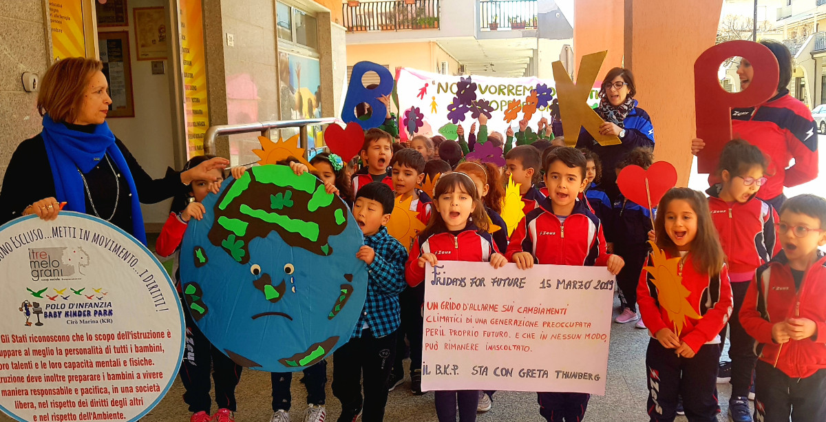 Il 15 marzo, accanto agli studenti è scesa in piazza anche Legambiente con la manifestazione “Global strike for future”, con lo scopo di contribuire alla nascita di un movimento ampio e trasversale per il clima in Italia, come ha detto il suo presidente. E proprio il nostro Paese è stato secondo per numero di adesioni, dietro solo alla Germania. “Nel complesso – scrive l’associazione ambientalista – sono stati 117 gli eventi italiani in 108 località diverse. Non poteva mancare la puntuale sensibilizzazione sul tema, del Polo D’Infanzia Baby Kinder Park, che ha sempre posto la doverosa attenzione al problema, inserendo dal lontano 1999 nel proprio programma formativo, il rispetto per l’ambiente e l’amore che a questo irrinunciabile “compagno di vita” si deve. Molti i progetti formativi svolti durante gli anni, inseriti anche nel dossier del Comune di Cirò Marina per l’ottenimento della “Bandiera Blu” a conferma dell’attenzione al tema che da sempre i titolari della Cooperativa Sociale I Tre Melograni, hanno posto rispetto al fenomeno che oggi sta assumendo carattere internazionale con più forza.