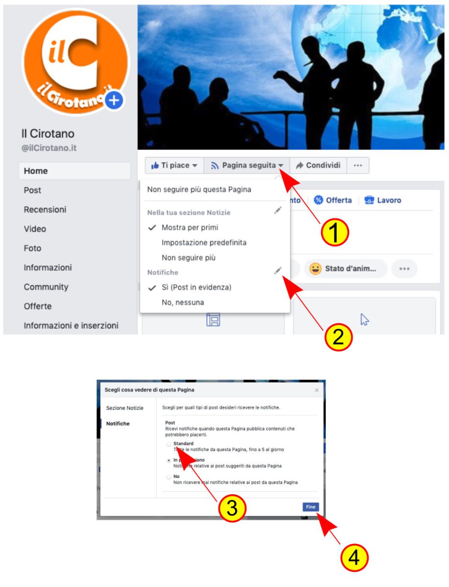 Come ricevere tutte le notifiche dalla pagina Facebook de ilCirotano.it