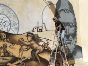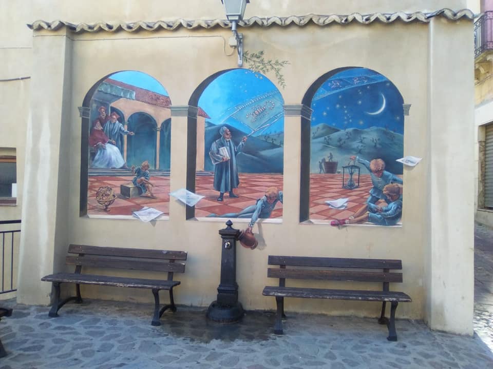 La fedele riproduzione del mezzo busto di LILIO in primo piano e sullo sfondo suggestioni di uno spazio metafisico. Personaggi e costellazioni celesti proiettate sul cielo azzurro che si intravede da tre arcate. Pareti come tele. Da Porta MAVILIA, all’ingresso dell’antico borgo, a Piazza della LEGALITÀ e delle LIBERTÀ, agorà che si apre ai vigneti che si affacciano sul mare; passando dalla piazzetta adiacente la chiesa della Madonna del CARMINE, fino alla casa natale di LILIO andando verso la chiesa di San NICODEMO. – È lungo questo percorso che i writers selezionati nell’ambito del concorso di street art stanno definendo in queste ore dettagli e particolari dei propri progetti creativi. Sarà possibile ammirarli nel corso dell’educational tour musicale che alle ORE 16 di GIOVEDÌ 21, Equinozio di Primavera, darà il via ufficialmente alla quattro giorni di eventi nell’ambito della 7a Giornata regionale del Calendario in memoria di Aloysius LILIUS che si concluderà DOMENICA 24 MARZO.