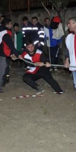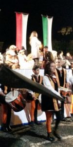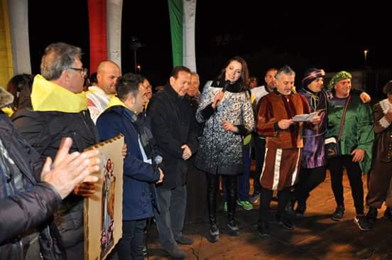 A presentare la serata Anna Aloi di Telespazio Calabria, che ha brillantemente diretto la parata e poi il Palio. La serata è iniziata infatti con la tradizionale parata che, dopo la sfilata per un tratto del paese, ha fatto il suo ingresso in Piazza. Ospiti d’onore gli Sbandieratori di Bisignano, il gruppo Folk “I Canterini di Serrastretta e i Falconieri di Palizzi insieme ai duellanti con le spade. Alla parata erano presenti ovviamente anche tutti i rappresentanti delle rughe in gara, una dopo l’altra le rughe hanno fatto il loro ingresso in Piazza accolti a gran voce dalle tifoserie popolari. La Marina, la Piana Berlingeri, il Villaggio e Valle di Case, questi i nomi delle 4 rughe che rappresentano ognuno una zona geografica specifica del paese. Dopo un’avvincente gara articolata su sei giochi popolari tradizionali tra i quali la corsa con i sacchi e il lancio dei cerchi ad avere la meglio è stata la ruga della Piana Berlingeri, che per la prima volta si è aggiudicata il quadro di San Giuseppe che dovranno custodire per un anno, ossia fino al prossimo Palio.