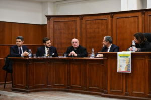 A sottolineare l’importanza della tematica e dei suoi molteplici risvolti, penali, civili e culturali erano presenti tutti : dal Procuratore della Repubblica dott. Giuseppe Capoccia a SE il Prefetto Fernando Guida, dall’arcivescovo SE Mons. Domenico Graziani – per la prima volta relatore in Tribunale – al Questore dott. Massimo Gambino, dal Vicesindaco dott. Benedetto Proto fino a i rappresentanti delle Forze dell’Ordine locali; Carabinieri, Guardia di Finanza, Capitaneria di Porto e Polizia Penitenziaria.
