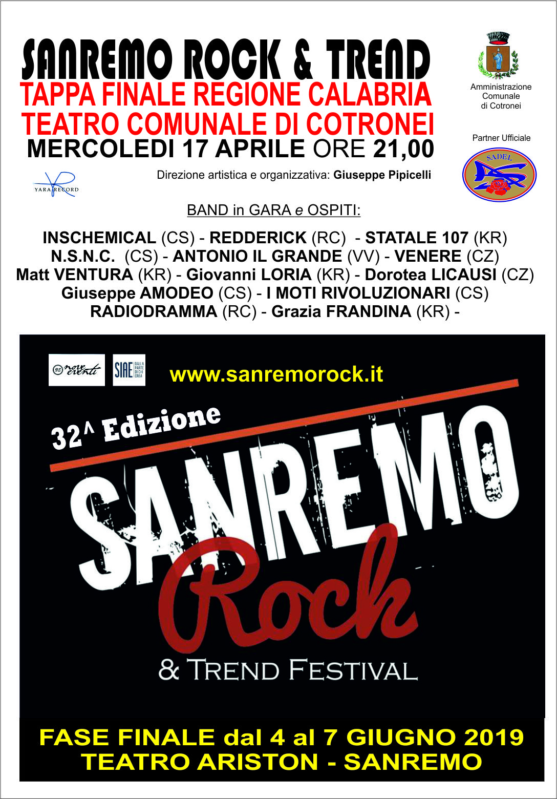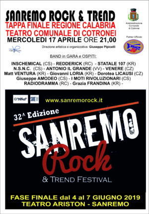 Ancora un gemellaggio artistico tra il teatro Ariston di Sanremo e il teatro comunale di Cotronei, sancito questa volta dal concorso nazionale per band rock e non solo più noto del nostro Paese.