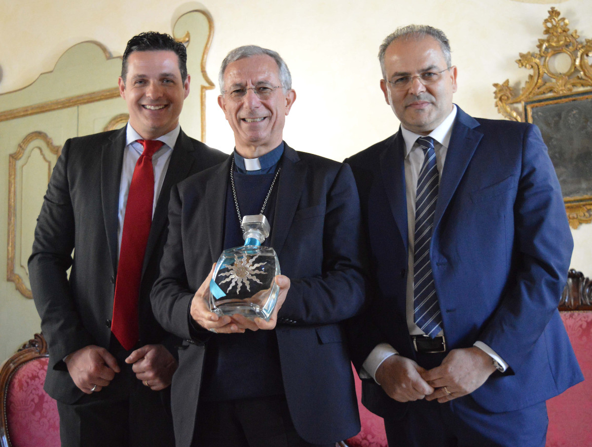 L’acqua come fonte e simbolo di vita. In occasione della XXVI “Giornata Mondiale dell’Acqua”, celebrata lo scorso fine settimana a Matera, il maestro orafo Michele Affidato insieme al Presidente dell’Ass. “Acque Minerali Academy” Daniele Valente, hanno consegnato a S.E. Mons. Giuseppe Caiazzo Arcivescovo di Matera – Irsina un’opera molto particolare, realizzata dal maestro orafo. Si tratta di un’esclusiva bottiglia con acqua prelevata presso una fonte a “Petelia”, oggi Strongoli, sorgente storica situata nel territorio dove è nato Papa Antero. Un vero e proprio omaggio alla Capitale Europea della Cultura 2019, contestualmente, simbolo di Città dell’Acqua. La bottiglia è caratterizzata dal “Cristogramma IHS”, realizzato in argento e oro, quale richiamo a Gesù essenza di Vita eterna. Nel corso della consegna, avvenuta presso la Cattedrale di Matera, S.E. Mons. Giuseppe Caiazzo ha detto tra le altre cose: “L’acqua è simbolo della vita, per questo noi riconosciamo Gesù come Fonte di vita eterna”. L’evento è stato patrocinato dall’Arcidiocesi Materana, dalla Presidenza del Parlamento Europeo, dalla Pontificia Accademia della Vita, Regione Basilicata, Regione Puglia, Regione Calabria, Unicef, Sigea Italia, Parco Nazionale dell’Alta Murgia, Fondazione Matera-Basilicata 2019, dalla Fondazione Malagutti, e dai comuni di Cosenza e Crotone. Tra i presenti il Ministro della Cultura del Montenegro Aleksandar Bogdanovic, il Segretario di Stato del Montenegro Mr. Drazen Blazic, l’Ex Presidente della Camera Irene Pivetti ed il Cavaliere Professore Giancarlo Elia Valori. Dopo la consegna della speciale bottiglia nel pomeriggio si è tenuto sempre a Matera, presso la chiesa di “Cristo Flagellato e della corte dell’Ex Ospedale San Rocco”, donata in concessione per l’evento dalla Soprintendenza Archeologica, Belle Arti e Paesaggio della Basilicata, il convegno dal titolo “Acqua Fonte di Vita”, al quale sono intervenuti rappresentanti del mondo delle Istituzioni, studiosi e esperti dell’acqua di levatura internazionale e momento in cui è stata promossa una raccolta fondi volta alla realizzazione di un pozzo in Burkina Faso. “Quello che abbiamo realizzato dichiara Affidato – è un lavoro particolare, ricco di significato. L’acqua è vita, è un elemento indispensabile per l’uomo e l’universo. Inoltre è un elemento fondante nella religione cattolica, che vede in Cristo l’acqua di vita vera”.