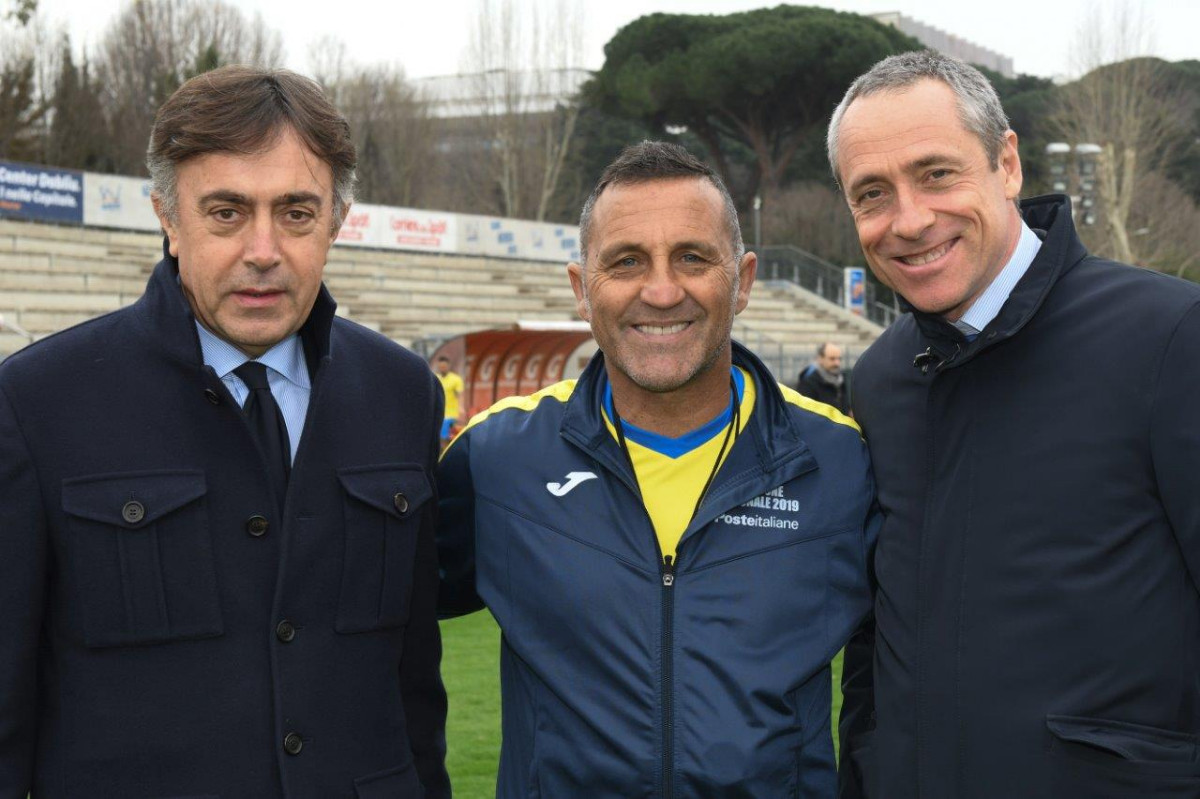 “Calcio d’inizio” per la Nazionale di Poste Italiane pronta al debutto agli ordini di mister Angelo Di Livio, il campione della Juventus, della Fiorentina e della Nazionale che guiderà dalla panchina la squadra gialloblù.