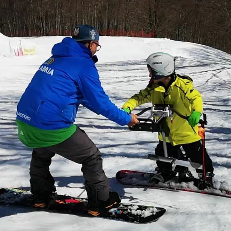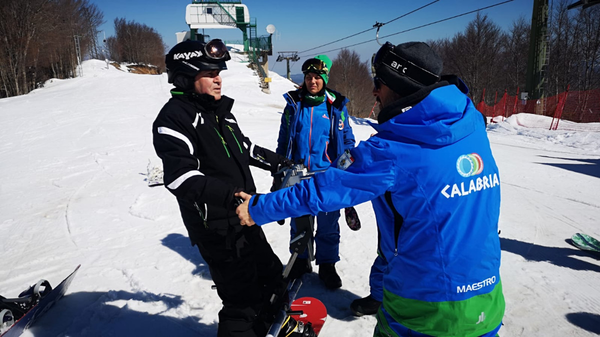 Tra i 18 collegi non poteva mancare l’adesione del Collegio Maestri di Sci Calabria, che grazie alla forte insistenza del coordinatore Giovanni Scalise e l’appogio del presidente del Collegio Fiorino Spizzirri hanno dato la possibilità ai due maestri venuti dalla Valle D’Aosta Ruffier Didier e Roberto Barei, appartenenti al collegio maestri di sci Valle D’Aosta, che in due giorni hanno impegnato i maestri di snowboard calabresi, Giovanni Scalise, Francesco Lavigna, Davide Brancato, Anna Petruzziello, Federica Fazzari e in prestito dal collegio Sicilia Marco Loteta, che sulle piste del comprensorio di Camigliatello hanno prima appreso l’uso dell’ausilio e poi provato lo stesso sul campo, simulando il trasporto di persone di varia età che non erano mai andati sullo snowboard, creando il giusto feeling e trasmettendo la giusta fiducia.
