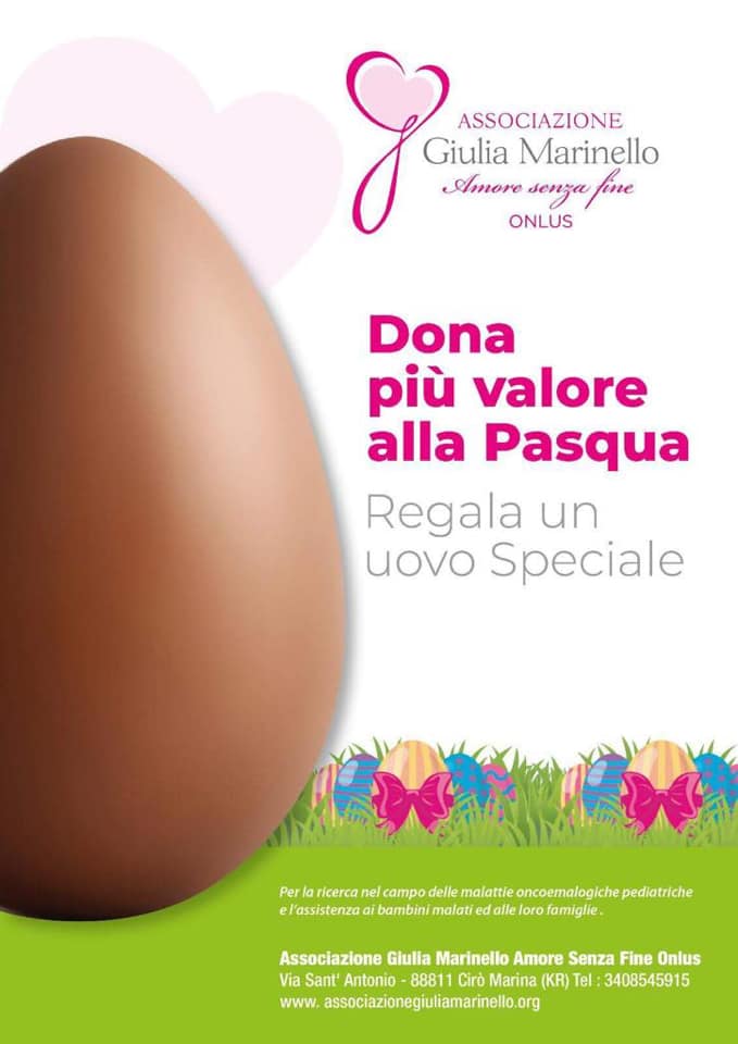 Rendi speciale la tua Pasqua, acquista un uovo di Pasqua dell’Associazione “Giulia Marinello”,