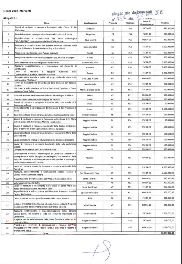 E’ notizia di poche ore fa il finanziamento di diversi milioni di Euro dal MIBAC alla Regione Calabria, destinati alla valorizzazione dei beni architettonici e culturali della nostra Regione. Ma la notizia più importante, a dir poco storica, per noi di Associazione Ferrovie in Calabria, è quella relativa alla valorizzazione turistica delle linee ferroviarie calabresi, finanziata per ben 1,5 milioni di Euro. Si tratta di una grande vittoria per la nostra associazione, le cui istanze di questi anni sono state fatte proprie e portate avanti con grande impegno da parte della Regione Calabria, con particolare riferimento all’Assessore alle Infrastrutture Roberto Musmanno: dopo il ripristino della Ferrovia Silana nell’agosto 2016 e del relativo servizio ferroviario turistico tra Moccone e San Nicola Silvana Mansio, fortemente spinto dal Presidente Oliverio, il cui impegno ha portato all’inserimento tutta la Ferrosilana all’interno della Legge nazionale sulle Ferrovie Turistiche, con la la deliberazione n. 121 del 2 aprile da parte della Giunta regionale, che destina 1,5 milioni di Euro alla valorizzazione turistica del patrimonio ferroviario regionale, viene compiuto un altro importantissimo passo. Un passo che, probabilmente, è di gran lunga superiore anche a quello di altre regioni italiane, in tema di turismo ferroviario!