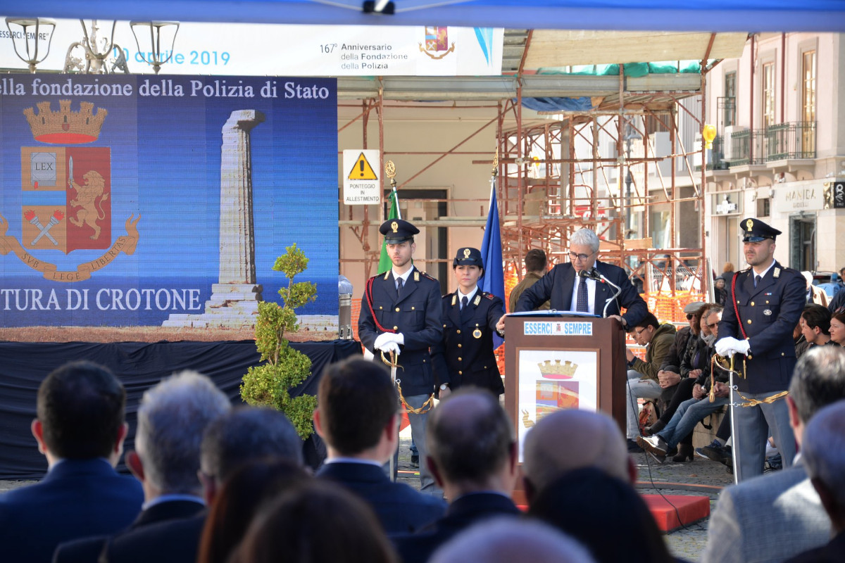 Signor Prefetto, Eccellenza Reverendissima, Autorità, gentili Signore e Signori, a Voi tutti giunga il saluto cordiale e grato delle donne e degli uomini della Polizia di Stato della provincia di Crotone che ho l’onore di rappresentare e che oggi celebra il 167° anniversario dalla sua fondazione.