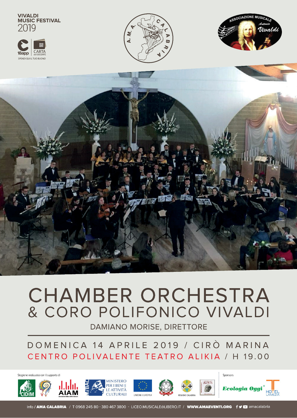 La “Vivaldi Chamber Orchestra”, nata nel 2010 dalla voglia di condividere la stessa passione per la musica all’interno della stessa Associazione, in 20 anni di attività formativa ha contribuito in maniera determinante alla vita musicale del Paese e del territorio crotonese, grazie alla determinazione della direttrice M° Rosa Anania e del presidente Antonio Bava. E’ il M° Damiano Morise ad essere il direttore dell’Orchestra, la quale negli anni è stata invitata a numerose rassegne, concerti ed eventi artistico-culturali, ricevendo premi e riconoscimenti. L’unione con il coro “Ensemble Corale Vivaldi” ha determinato nell’anno accademico 2017/2018 un grande successo per la novità e la scelta del repertorio, reso possibile dagli arrangiamenti ad organico misto del direttore. L’orchestra ed il coro prendono parte a corsi di perfezionamento orchestrali e per direttori d’orchestra.