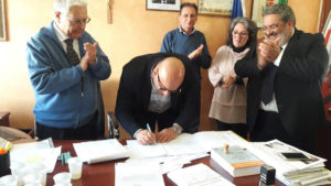Dopo la sigla del contratto, controfirmato dal Responsabile del Personale, Sig. Giuseppe Fuscaldo, e dal Responsabile Finanziario, dott. Nicodemo Tavernese, si è proceduto ad un brindisi augurale che ha coinvolto anche l’Ing. Ferdinando Iacovino, tecnico del pari neo assunto, sia pure a tempo determinato, nelle more dell’espletamento del concorso pubblico, programmato a breve termine, per la copertura di due posti di istruttore direttivo tecnico, dei quali uno a tempo pieno e l’altro a tempo parziale.